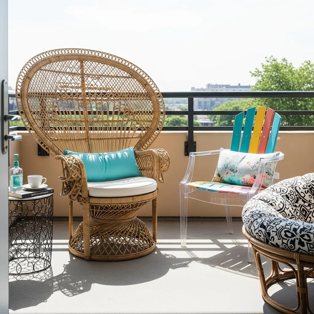 Statement chairs anchor your balcony design while expressing personal style in ways that matching sets cannot achieve. Choose one distinctive piece that genuinely excites you – whether vintage, boldly colored, unusually shaped, or made from interesting materials – and build your balcony aesthetic around it. This approach costs less than buying complete matching sets while creating more interesting, collected-over-time aesthetics that feel personal rather than showroom-staged. Position your statement chair in the best spot for views, light, or privacy, making it the obvious place to sit when you step outside and establishing a clear focal point that prevents your balcony from feeling aimless or undefined.