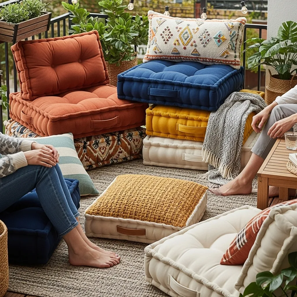 Floor cushions revolutionize balcony seating by providing flexible, comfortable options that accommodate varying numbers of guests without permanent furniture commitment. Waterproof or water-resistant outdoor cushions withstand unexpected rain and morning dew while maintaining their shape and color through seasons of use. Stack them in corners when not needed to conserve floor space, then arrange them in conversational groupings when entertaining or spread them out for solo lounging with a good book. This seating solution works especially well for narrow balconies where traditional chairs would create cramped walkways and uncomfortable traffic flow between indoor and outdoor spaces.