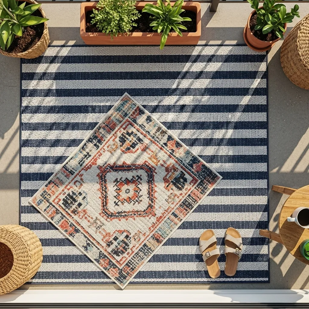 1. Layered Outdoor Rugs for Textured Foundation
