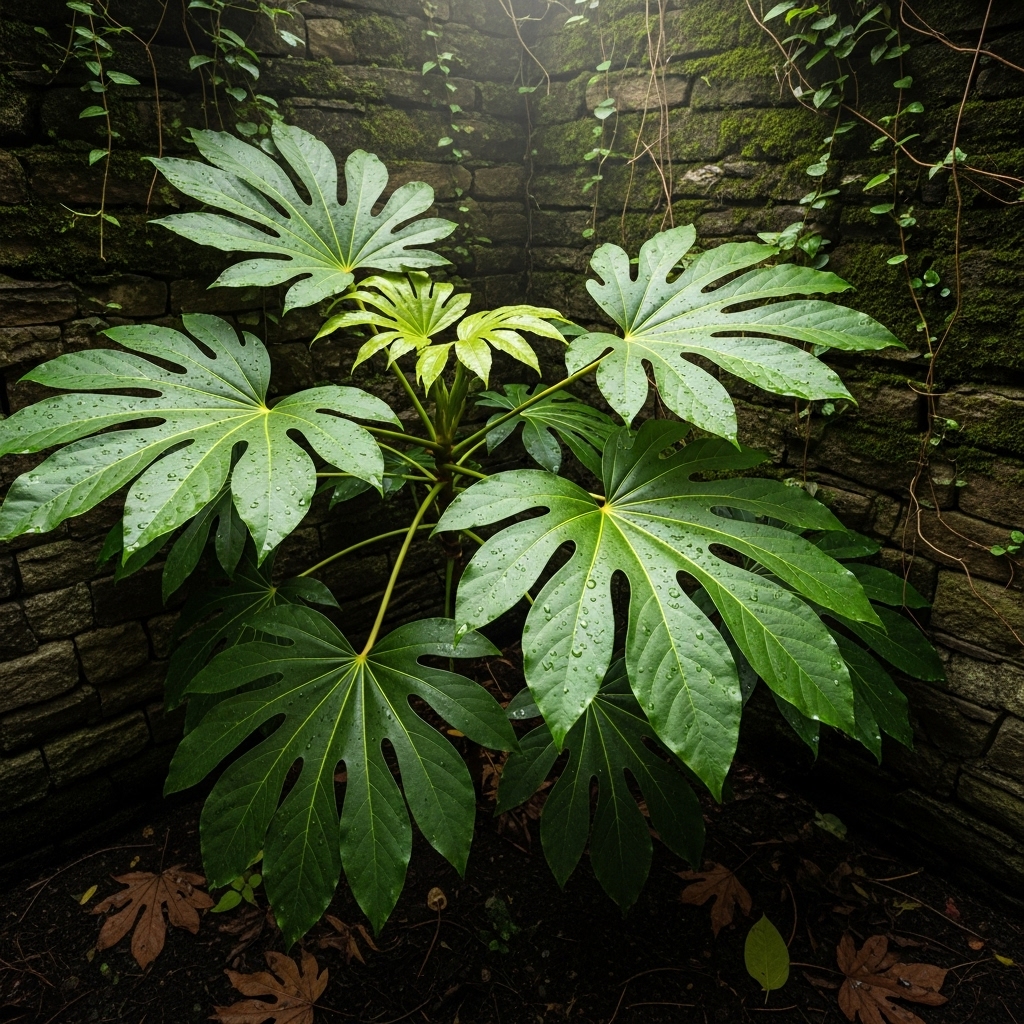Fatsia japonica is perfect for north-facing outdoor spaces due to its tolerance for shade and cooler conditions. Its large, dramatic leaves add a tropical feel without requiring direct sunlight. This plant makes shaded areas feel full and intentional.