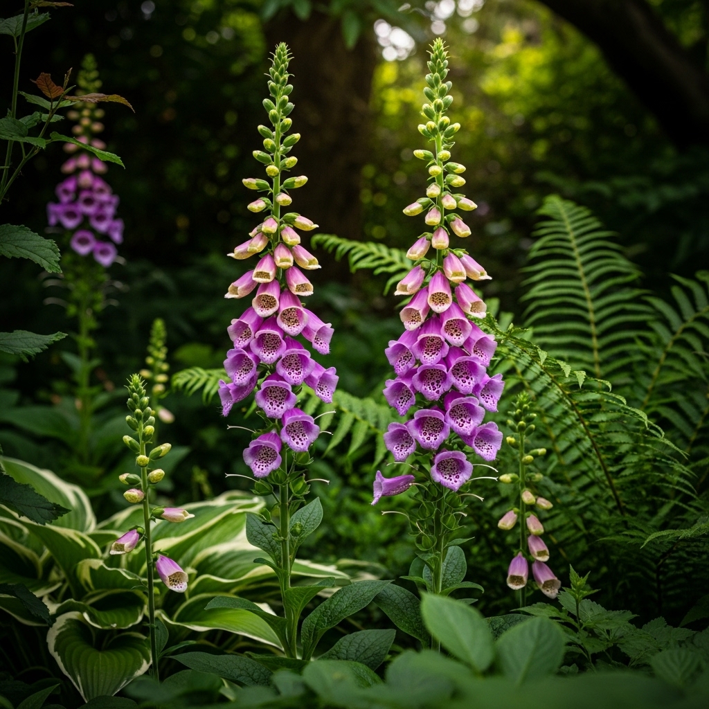 These plants bloom seasonally and attract pollinators, adding life to shaded areas. While foxglove prefers moist soil, it does not require intense sunlight. When planted in groups, it creates a striking focal point in low-light outdoor environments.