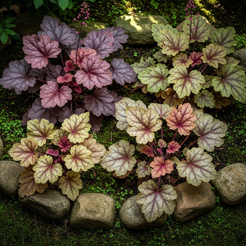 These plants are compact and work beautifully as border plants or in containers. Heuchera pairs well with ferns and hostas, creating layered texture. With proper drainage and occasional watering, they remain vibrant and resilient in shaded environments.