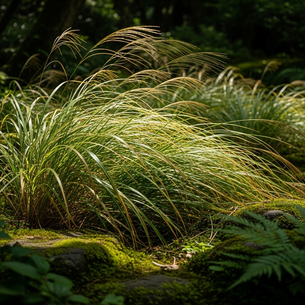 Japanese forest grass thrives in north-facing gardens due to its love for shade and cool conditions. Its graceful, cascading blades add movement and softness to outdoor spaces that lack sunlight. This grass is ideal for borders and shaded pathways.