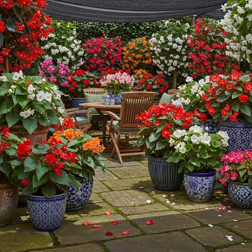 These plants bloom continuously when cared for properly, adding long-lasting color. Regular watering and well-draining soil keep begonias healthy. Their compact size makes them ideal for small outdoor spaces where sunlight is limited but visual impact is still desired.